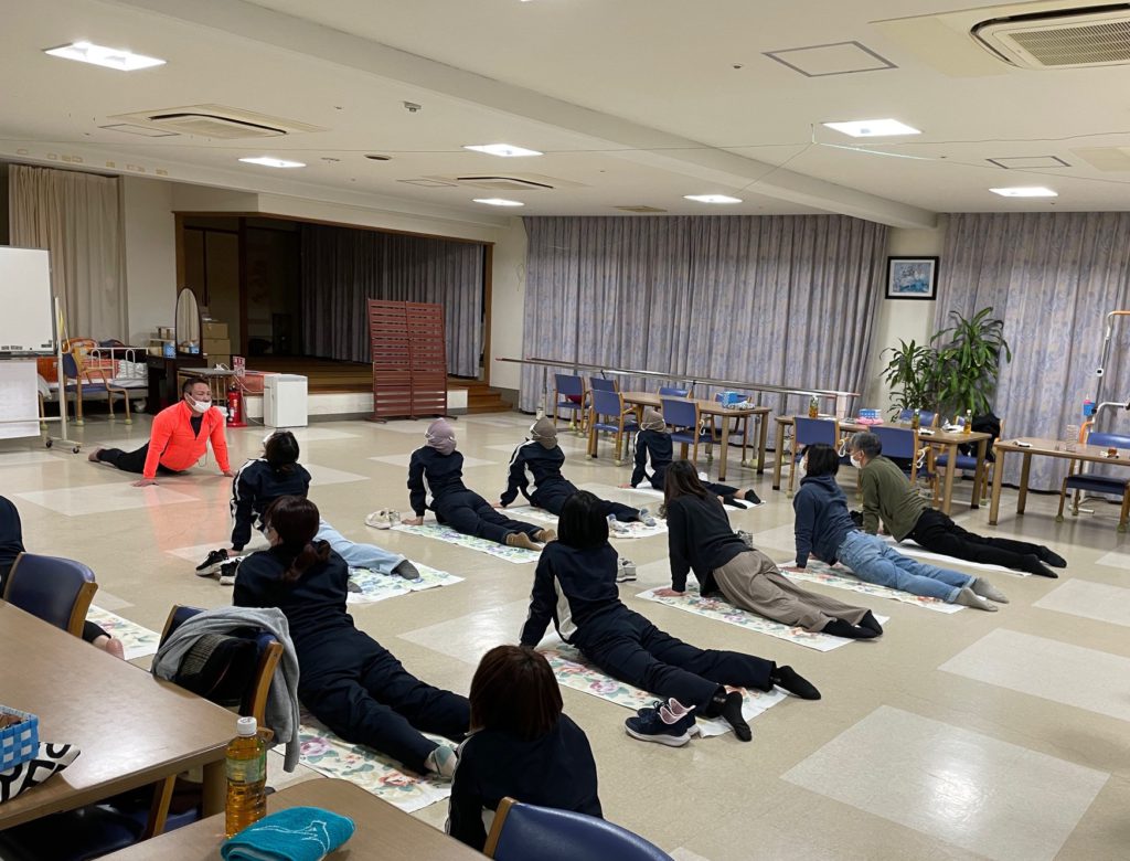 2025年11月21日 / 最終更新日 : 2025年11月27日 admin 更新情報 施設状況のご案内 -施設内研修 腰痛予防・ストレスケア- 今年もキックボクシングで体を動かしました。今回、参加者の内、3分の1以上が外国人職員、研修でも異文化交流ができました。