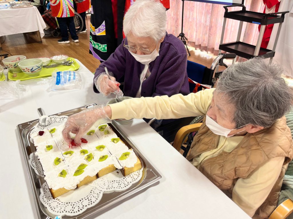 2026年1月19日 / 最終更新日 : 2026年1月19日 admin 更新情報 施設状況のご案内 -本体特養 新年会- 今年の新年会は、盛り沢山のプログラムでした。“クイズ大会”や“職員の今昔スライドショー”もありました。最後は、皆さんで作ったデコレーションケーキを召し上がっていただきました。